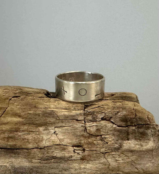Patterned Sterling Silver Ring with a Touch of Gold Size 11